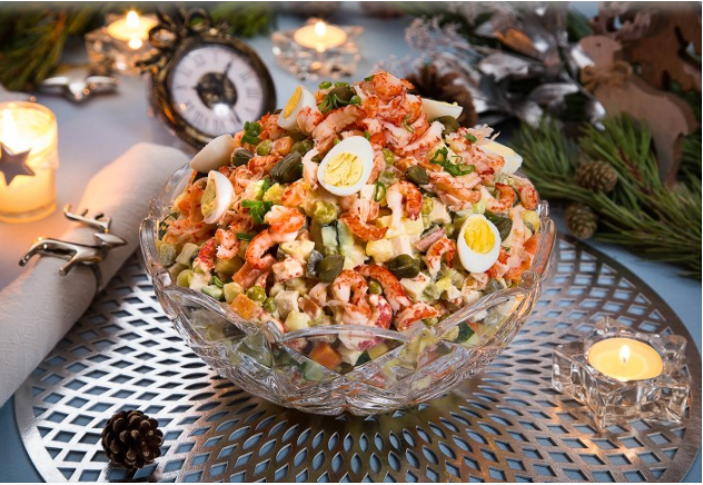 Царский оливье с раковыми шейками по-старорусски