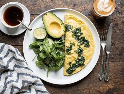 Омлет с зелёным луком, шпинатом и куркумой,