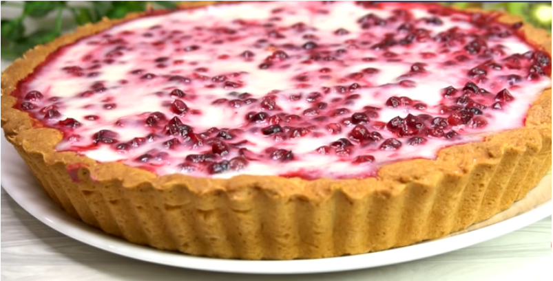 Теперь возьмите бруснику, добавьте 1 столовую ложку крахмала, тщательно перемешайте и выложите на тесто. Выпекайте при температуре 180 градусов Цельсия в течение 30 минут.