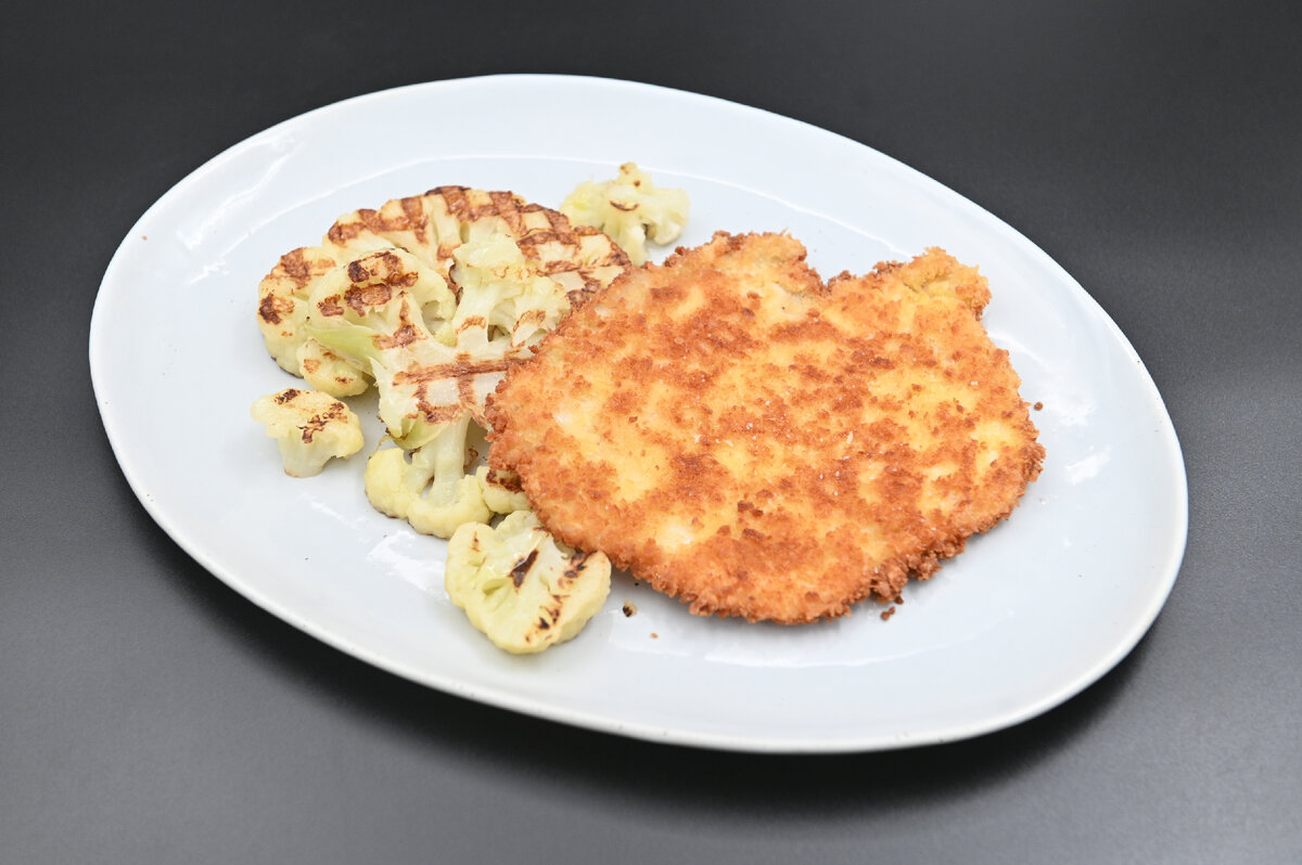 1. Подготовьте цветную капусту, нарезав ее на ломтики толщиной примерно 2,5 см, и отварите в подсоленной воде до состояния аль денте.