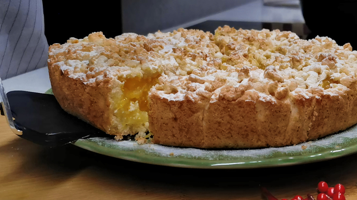 Ранее был показан похожий пирог с другой начинкой, но этот вариант выделяется своей зимней атмосферой и непревзойденным сочетанием ингредиентов. Для рецепта прекрасно подходят свежие апельсины.