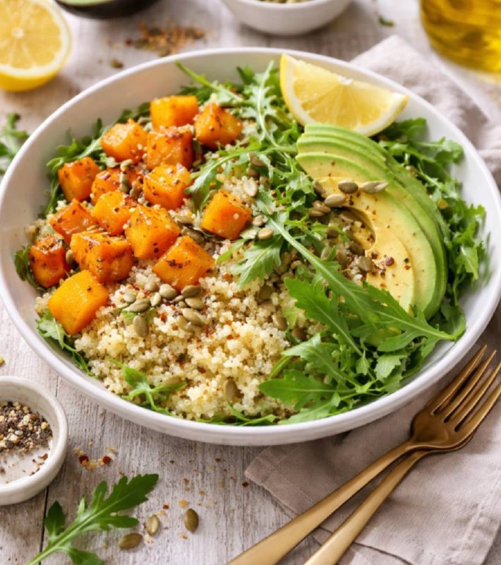 - Киноа: богатый источник растительного белка и магния, он помогает поддерживать уровень энергии.