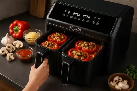 Благодаря ярким вкусам и простоте приготовления, летние перцы в аэрогриле станут отличной альтернативой для быстрого и полезного ужина. Теперь не обязательно тратить много времени у плиты — всего 20-30 минут, и душистые перцы будут готовы к подаче на стол.