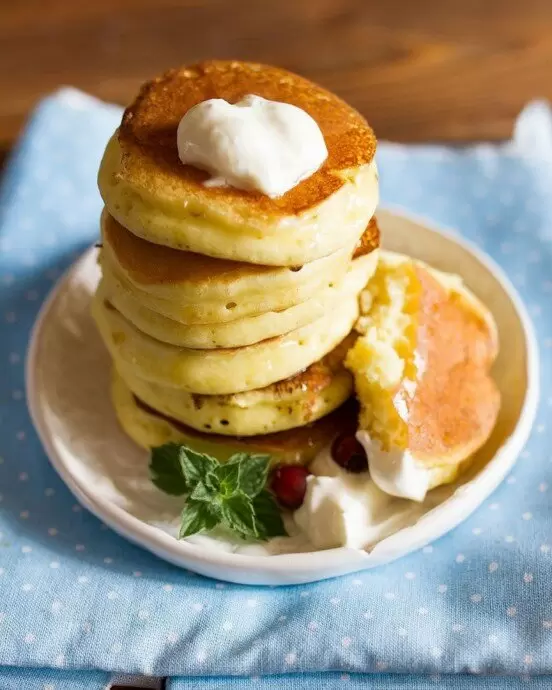 После готовности подать оладьи с медом, вареньем или сметаной. Они точно подняли настроение на завтрак и сделают его особенным.