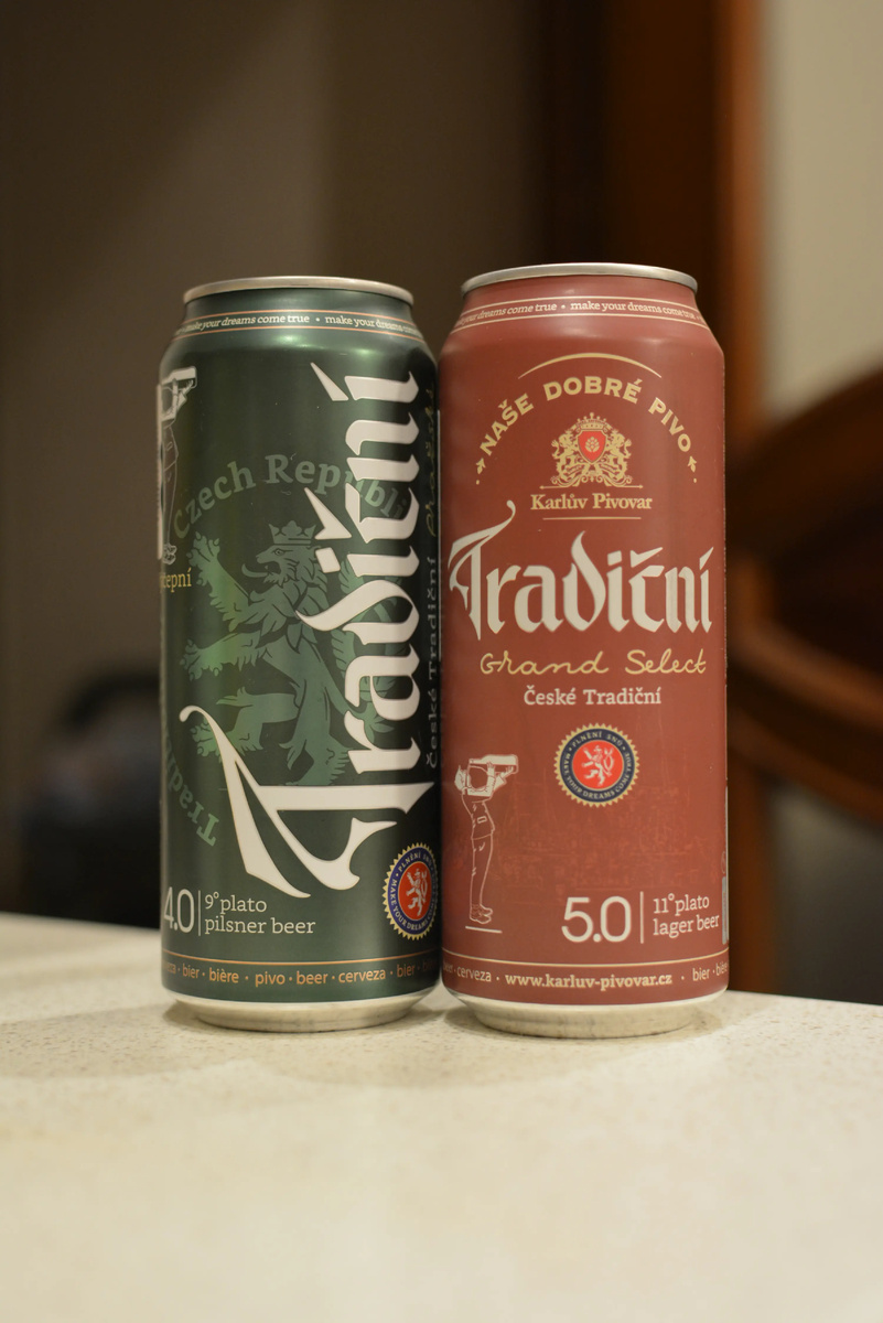 Оказавшись с банками Tradi?n? в руках, сложно не проникнуться доверием: стильная подача, любимая многими русскоязычная бумажная наклейка — всё на месте. А цена в 130 рублей в современные времена выглядит вполне приемлемо для чешского пива. Однако подробное изучение привело к неожиданным открытиям: это пиво на самом деле варится в Сербии на пивоварне Apatinska Pivara. Бренд Tradi?n? и контрактная пивоварня Karluv Pivovar, судя по всему, принадлежат импортеру — «Центр логистик», знакомому по пиву Karlova Krma.