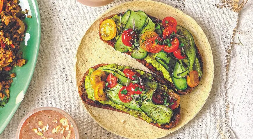 Тосты с авокадо и свежими овощами
