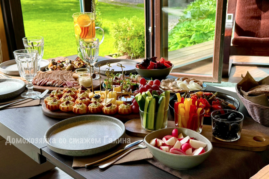 На столе можно было увидеть не только привычные угощения. Салаты из гриль-овощей, баранина с аутентичными специями, профитроли с сыром, закуски с карамелизованной грушей, – все это создавало феерию вкусов. Эти блюда, приготовленные с душой, идеально дополняли дух дружеской встречи.