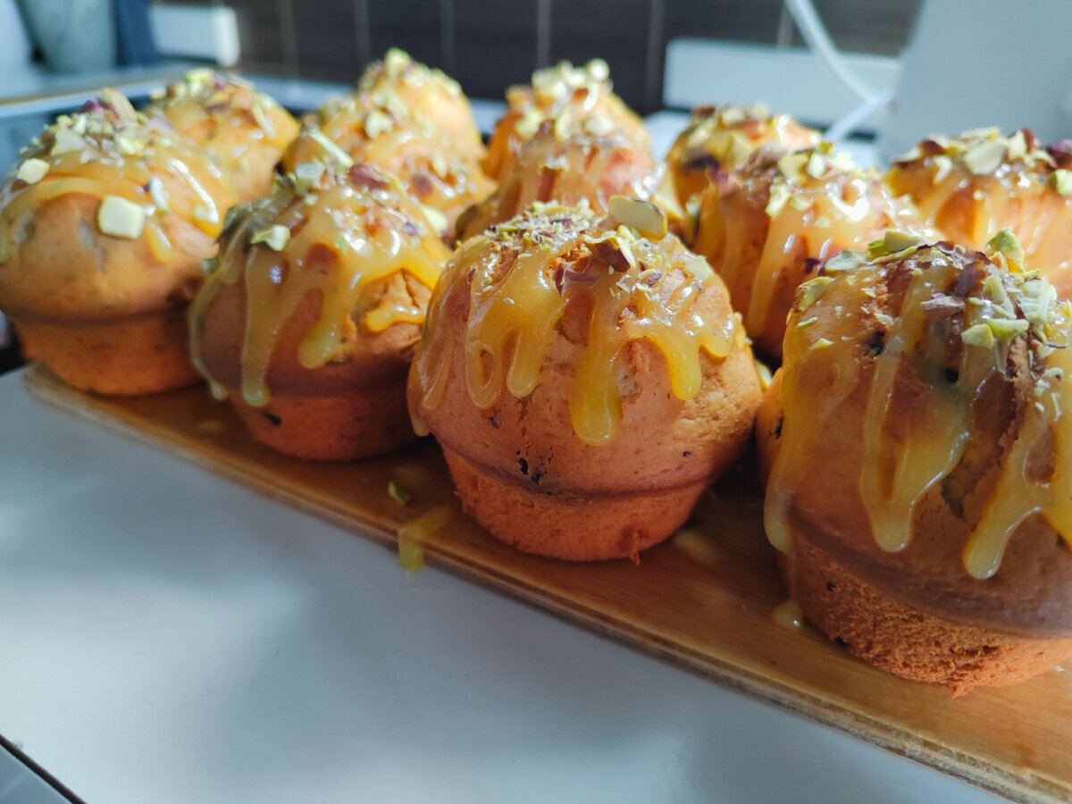 Разложив тесто по заранее подготовленным формочкам, вы эмпирически оцените, как оно поднимается и заполняет формы. Выпекайте маффины в разогретой духовке около 30 минут. Не забудьте дать им немного остыть перед тем, как вынимать их из форм.