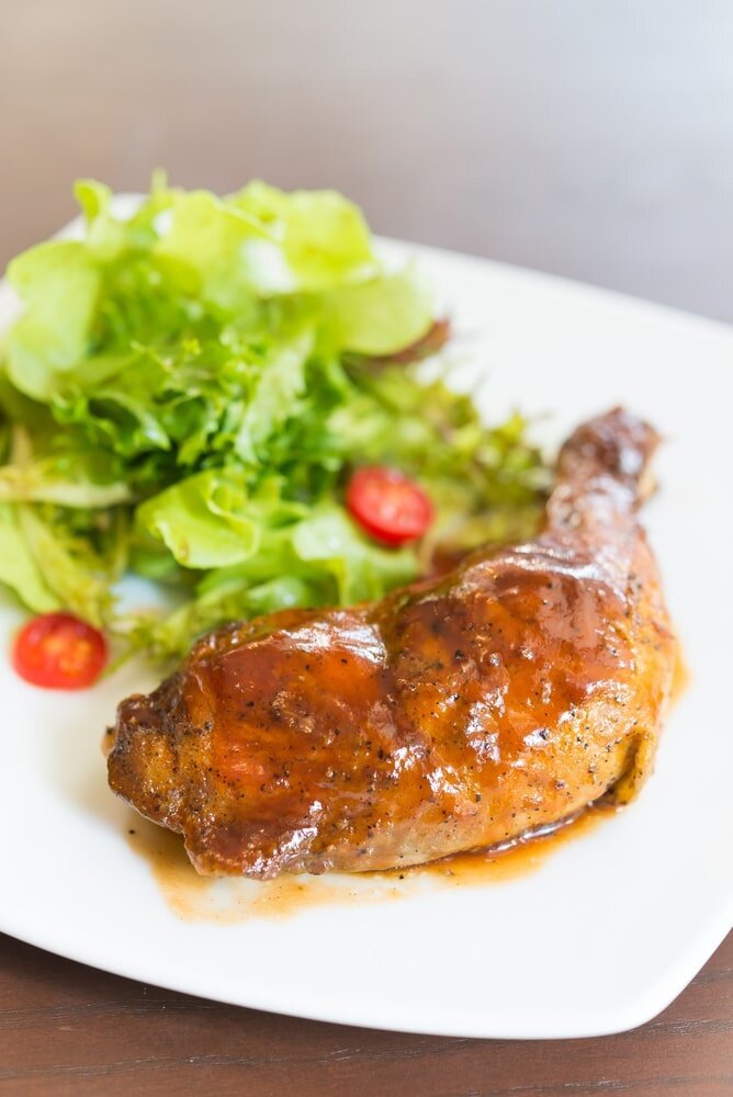 В процессе готовки соус уварится, и окорочка останутся покрытыми ароматной томатной прослойкой.