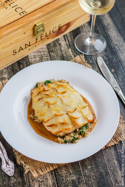 Приготовить подобное блюдо можно с любой рыбой: от трески до лосося. Ключевым моментом здесь является использование мандолины или острого ножа для нарезки картофеля. Можно не ограничивать себя и добавлять легкие гарниры, такие как шпинат, киноа или зеленый салат, но, как показывает практика, сама рыба с картошкой хорошо сочетается и без дополнительных компонентов.