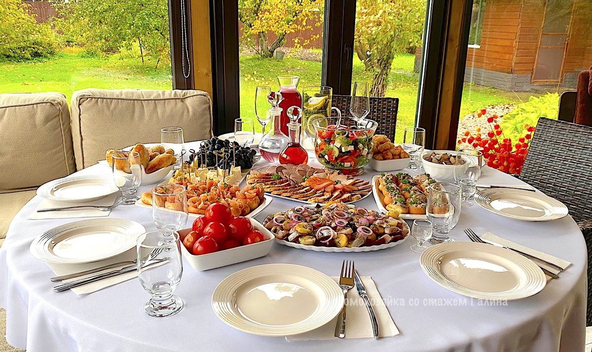 На столе также были запеченные овощи, салаты с селедкой и множество других деликатесов, что создало атмосферу истинного кулинарного праздника.