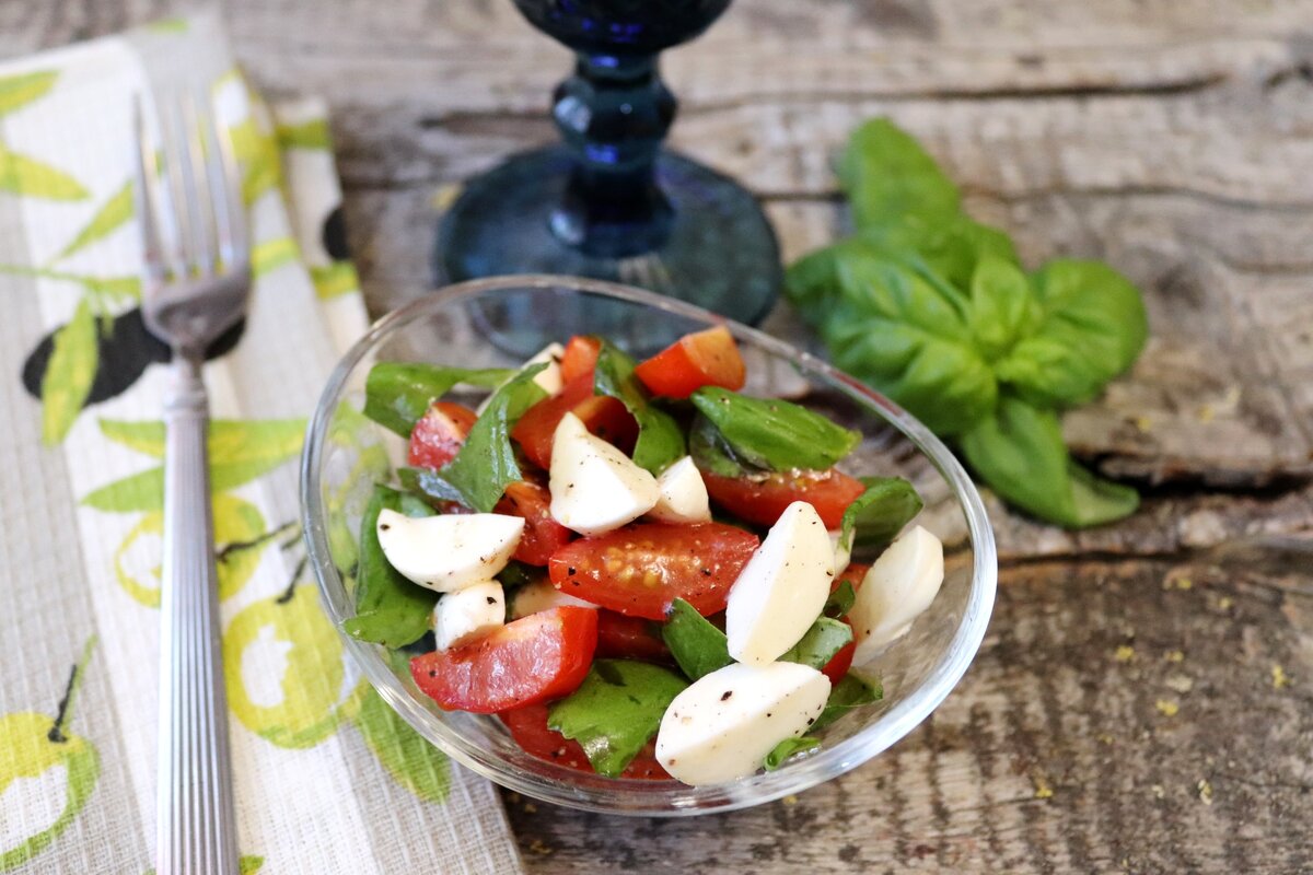 Начните с подготовки всех ингредиентов. Тщательно промойте помидоры черри и листья базилика, а моцареллу отцедите от сыворотки.