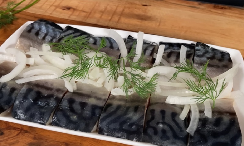 Поместите филе в керамическую емкость и заливайте остывшим рассолом так, чтобы кусочки были полностью покрыты. Для более равномерной соли можно положить легкий гнет. Лучше всего хранить в холодильнике минимум сутки, чтобы скумбрия успела впитаться в ароматы специй.