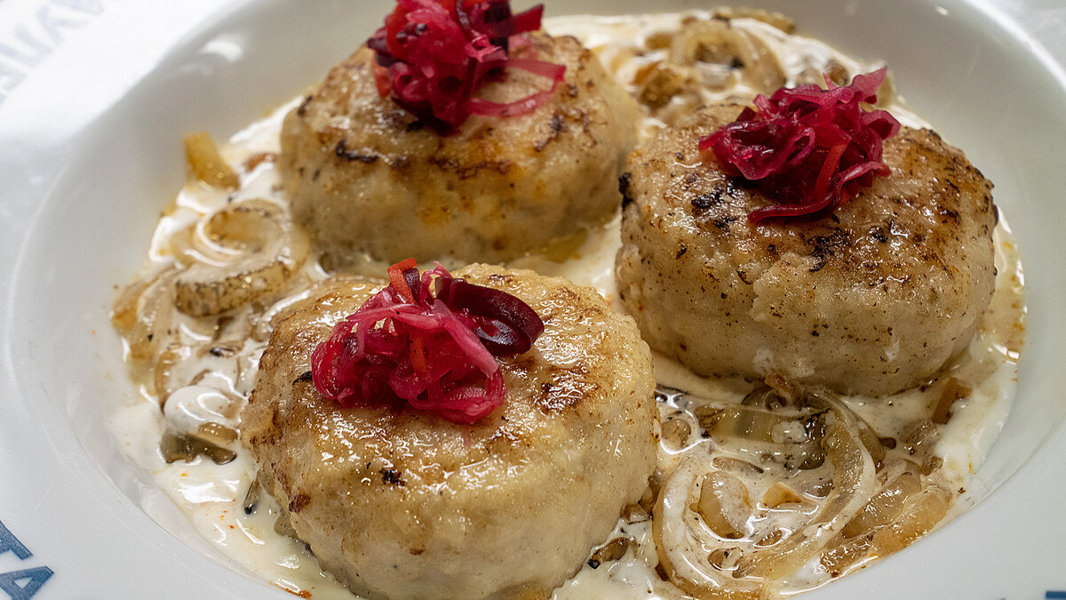 Перед подачей на стол, на дно тарелки выложите сметану, сверху положите котлеты, затем добавьте обжаренный лук и посыпьте копченой паприкой. Теперь можно наслаждаться удивительным вкусом этого блюда!