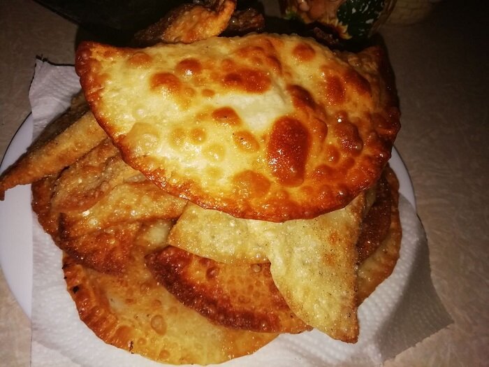 1. Небольшое количество сахара в тесте придаёт чебурекам характерную хрустящую корочку и воздушные пузырьки — именно так оно должно выглядеть!