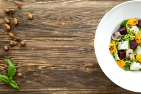 Теплый салат из вешенок и пекорино с фундуком