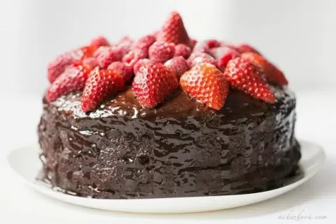 Для крема маскарпоне взбивается со сгущенкой и немного коньяка. Коржи покрываются кремом в следующем порядке: орехи, ягодные слои и немного крема впереди. Завершение — глазурь на основе сливок, масла, сахара и какао, которая запечатает этот десерт и добавит красоты.