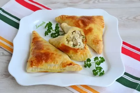 Слоеное тесто и куриное мясо – идеальное сочетание для быстрого и вкусного перекуса. Пирожки по этому рецепту получаются не только аппетитными, но и невероятно сытными, что обязательно порадует вас и ваших близких.