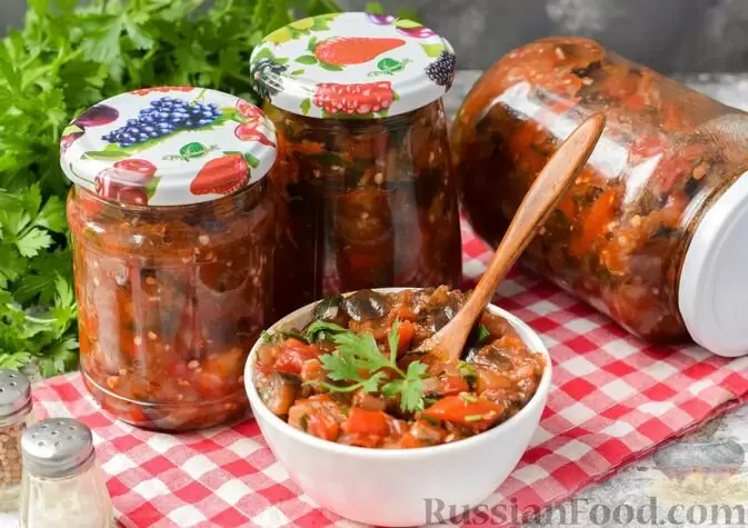- Сочетание баклажанов с помидорами, сладким перцем и пряными травами идеально подходит для консервирования икры без уксуса.