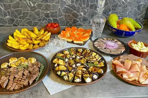 Несмотря на условия, ужин стал настоящим праздником. Основными блюдами стали рулетики с начинкой, говядина и картофель по-деревенски.
