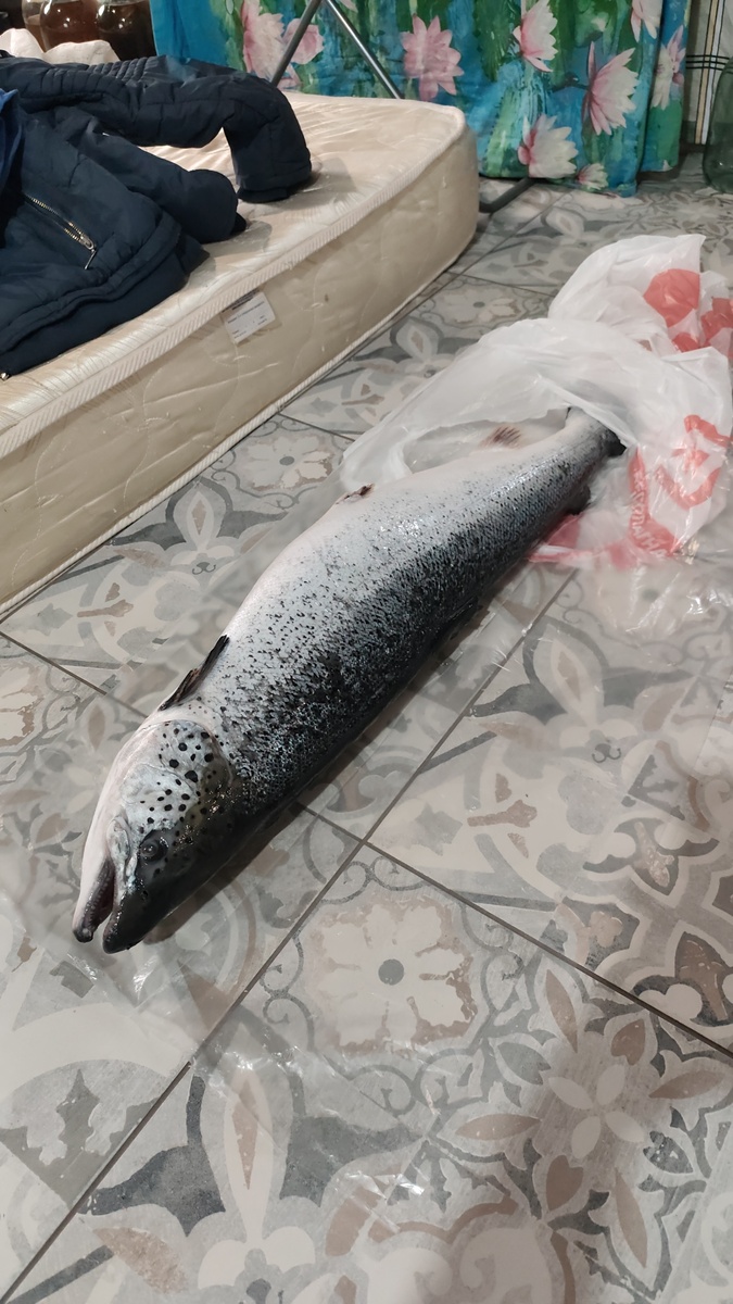 В этом году удалось приобрести великолепного лосося, его вес составил около 5.850 грамма. Несмотря на то что рыбка была потрошена, это не умалило её достоинств. Если бы она была с икрой, праздник мог бы стать ещё более ярким.
